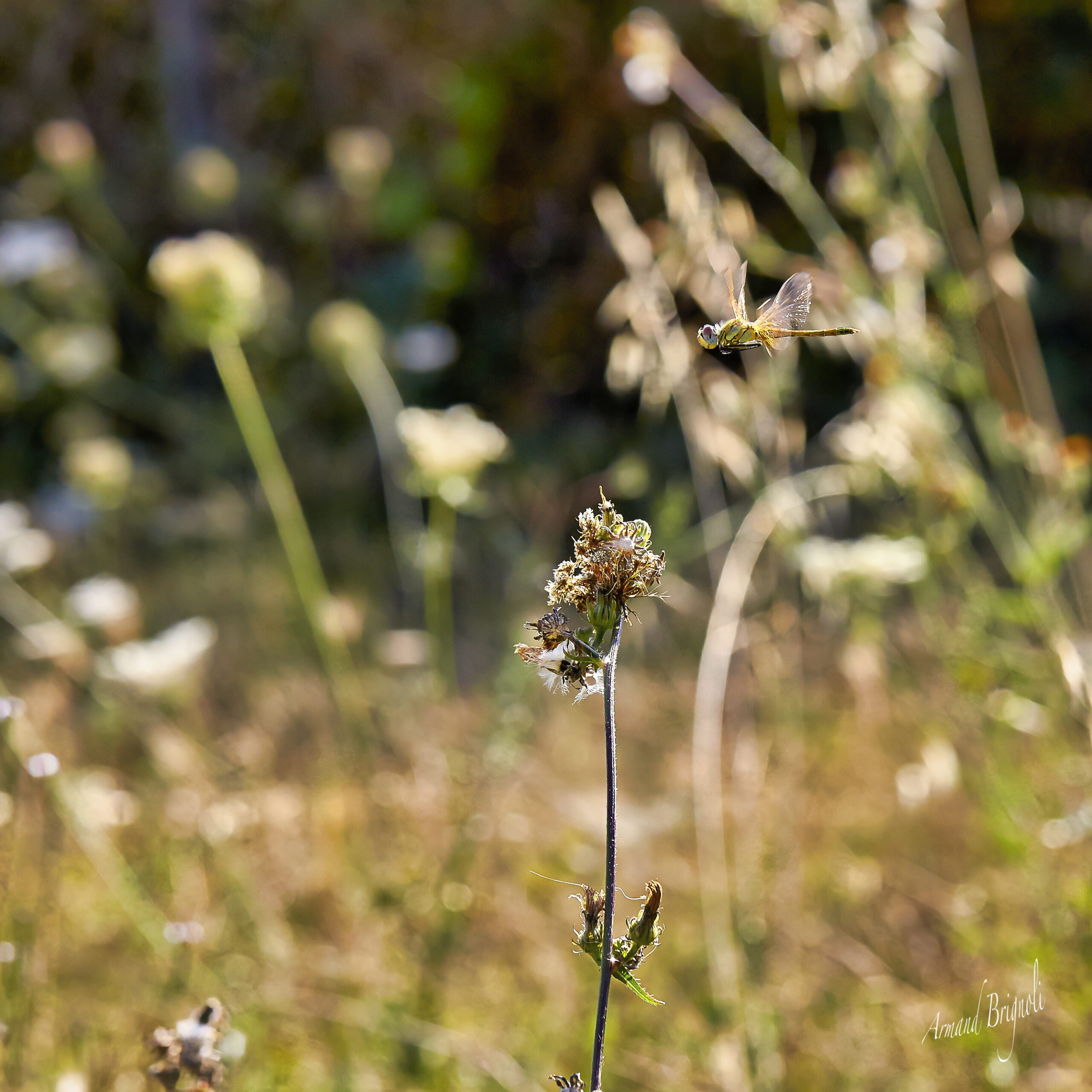 Dans le silence doré du champ, les libellules tracent des arabesques de lumière.