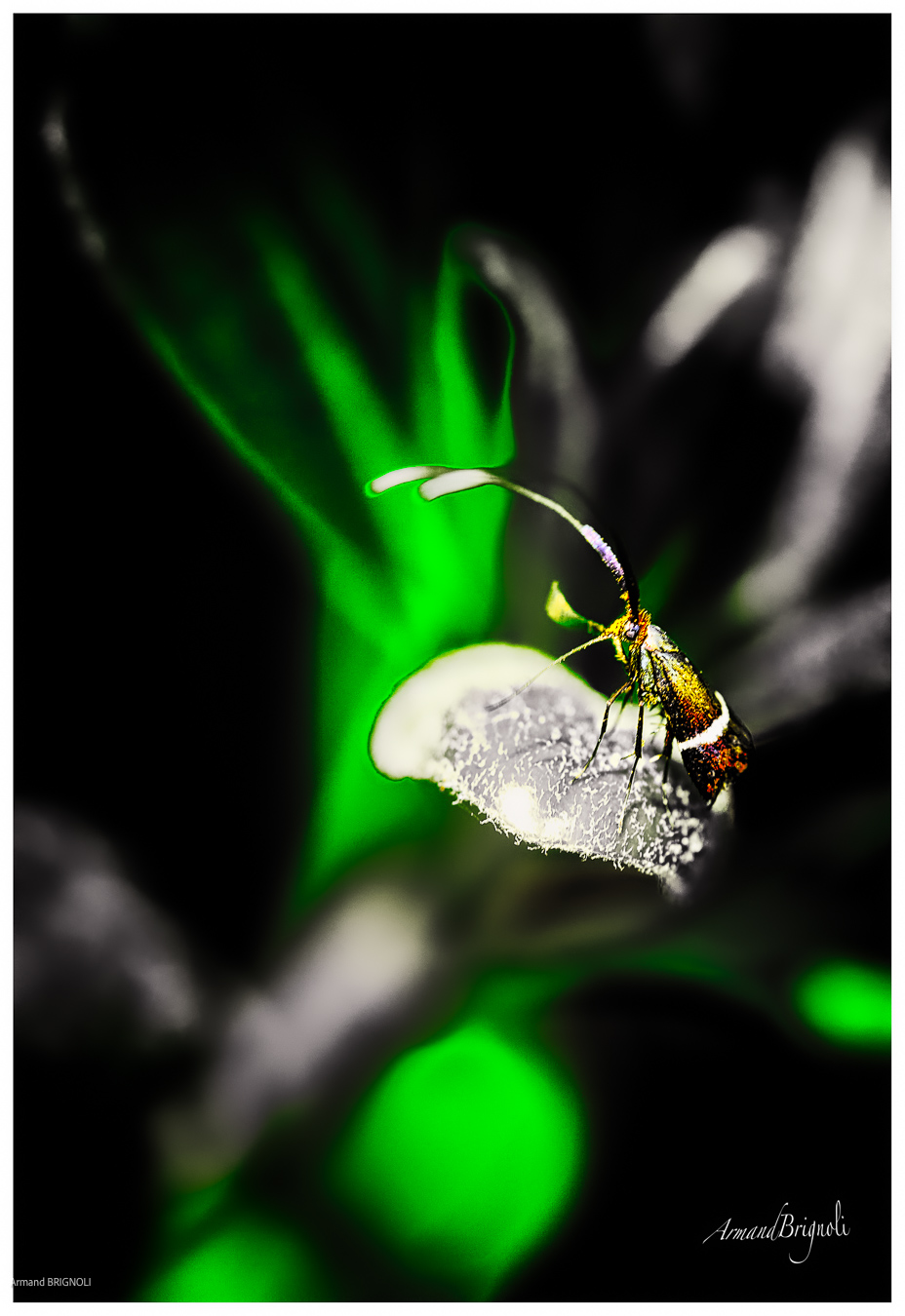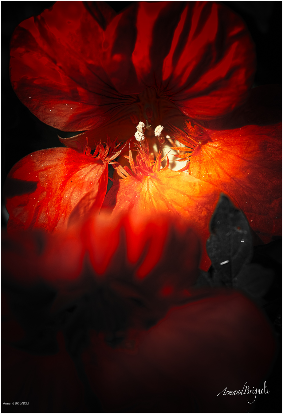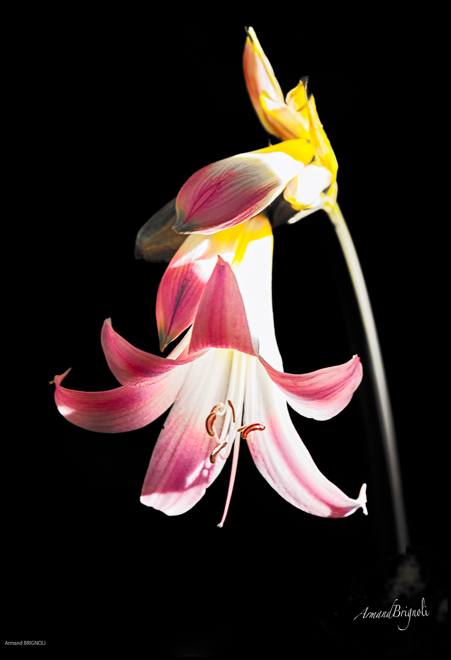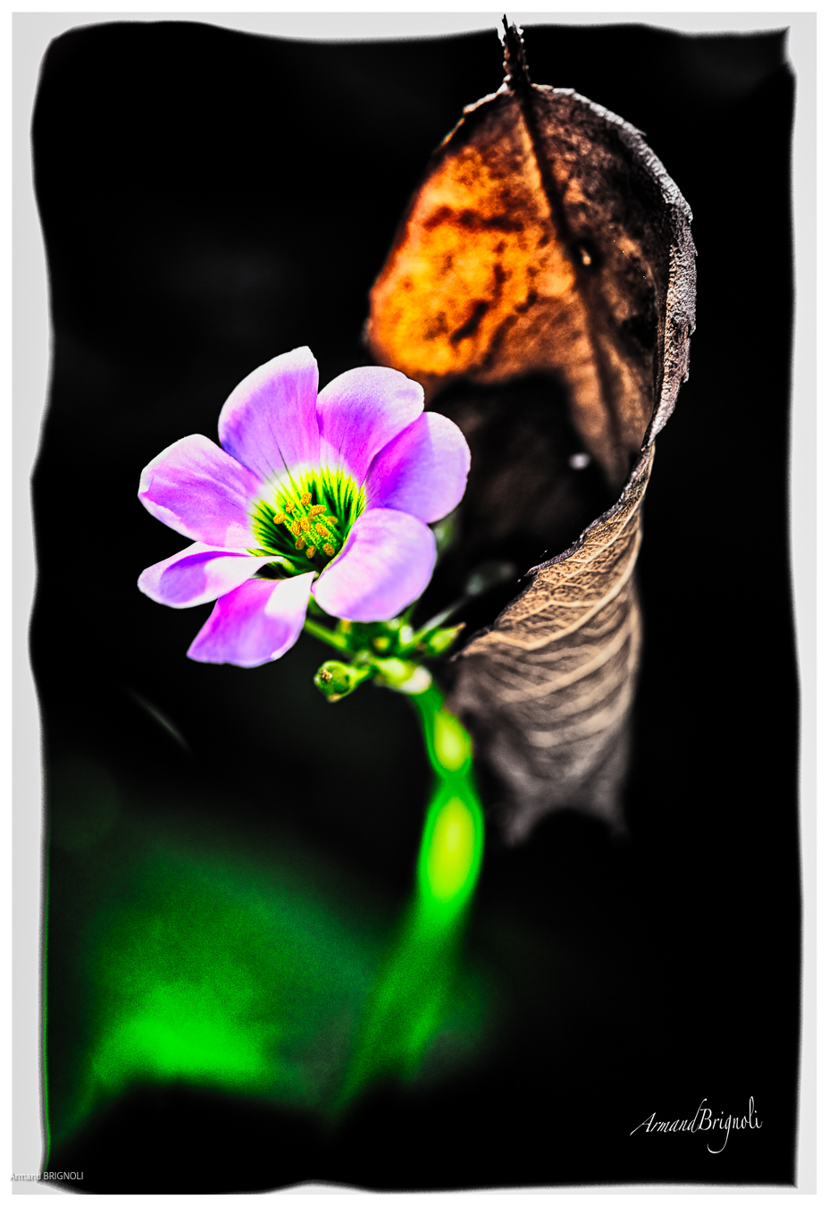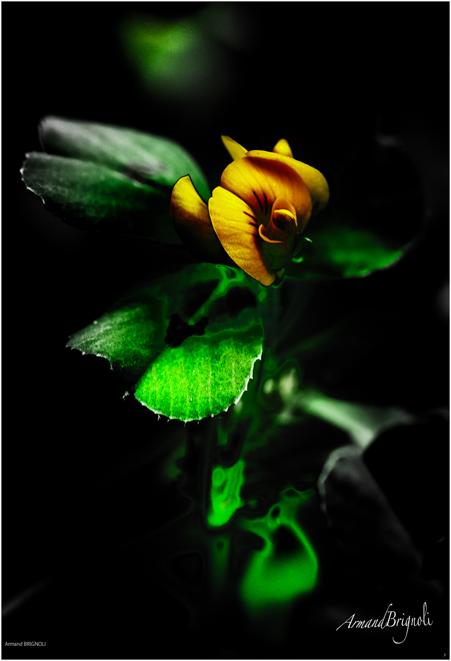 La couleur surgit, fragile et vivante, au cœur du noir.